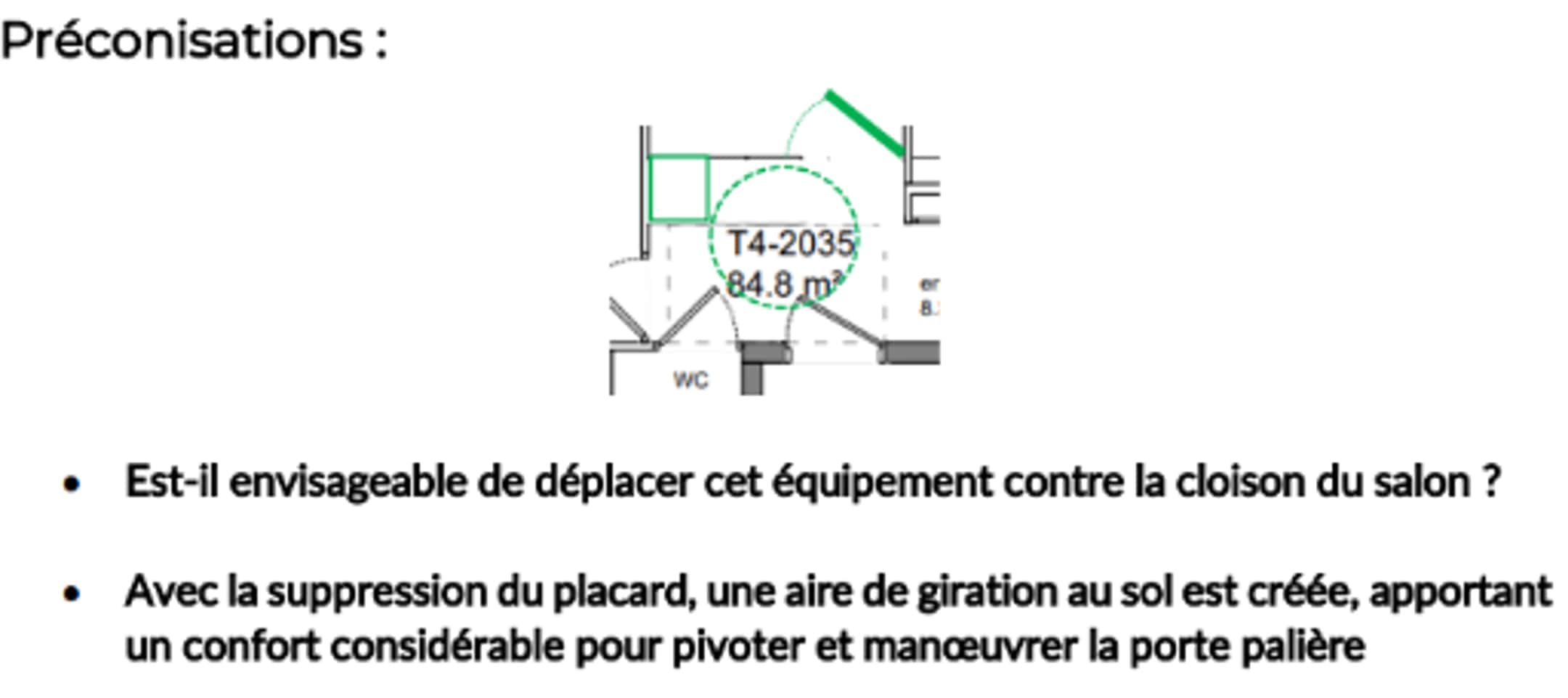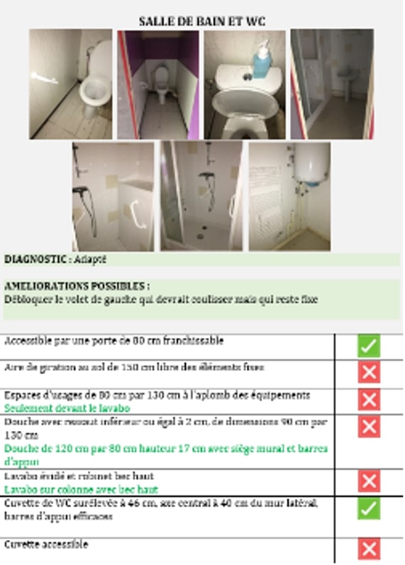 des parties communes et des logements accessibles dans l’opération immobilière. Préconisations de solutions d’améliorations sur plans.